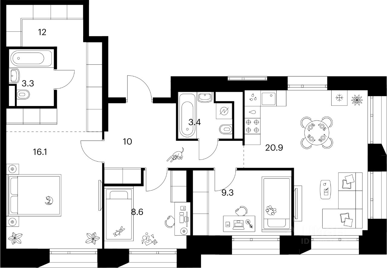 Продаётся 3-комн. квартира площадью 83,6 кв.м на 18 этаже 18 этажного дома (Корпус 1.1.3, Секция 3) проекта ПИК Онежский вал. Светлый просторный подъезд на уровне земли, функциональная планировка, большие окна, c отделкой.