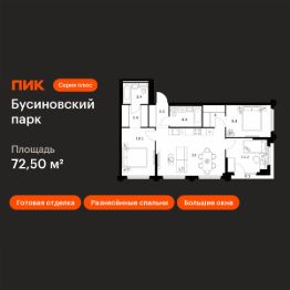 Продаётся 3-комн. квартира площадью 72,5 кв.м на 13 этаже 32 этажного дома (Корпус 22.1, Секция 1) проекта ПИК Бусиновский парк. Светлый просторный подъезд на уровне земли, функциональная планировка, большие окна, c отделкой.