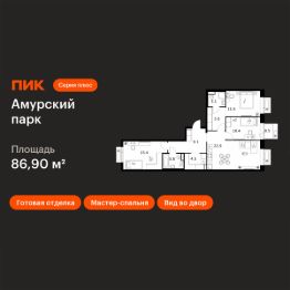 Продаётся 3-комн. квартира площадью 86,9 кв.м на 5 этаже 19 этажного дома (Корпус 4.4, Секция 4) проекта ПИК Амурский парк. Светлый просторный подъезд на уровне земли, функциональная планировка, большие окна, c отделкой.
