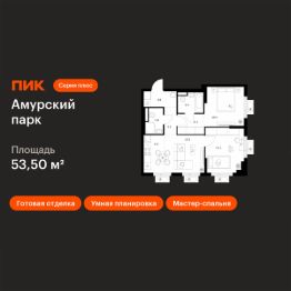 Продаётся 2-комн. квартира площадью 53,5 кв.м на 25 этаже 27 этажного дома (Корпус 4.3, Секция 3) проекта ПИК Амурский парк. Светлый просторный подъезд на уровне земли, функциональная планировка, большие окна, c отделкой.