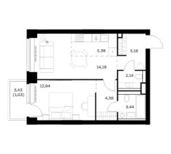 Строим кварталы для жизни с заботой о будущем. Предлагается 1-комнатная квартира премиум-класса площадью 48,67 кв.м в корпусе 1 на 3-м этаже, в жилом комплексе "НОВА".