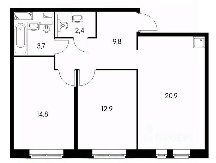 -Две меблированные комнаты (мебель остается по-договоренности).