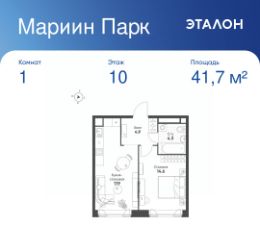 Общая площадь квартиры — 41.7 кв. м, этаж 10 из 16.