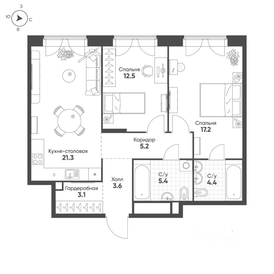 Продается 2-к квартира без отделки в ЖК "Мариин Парк".