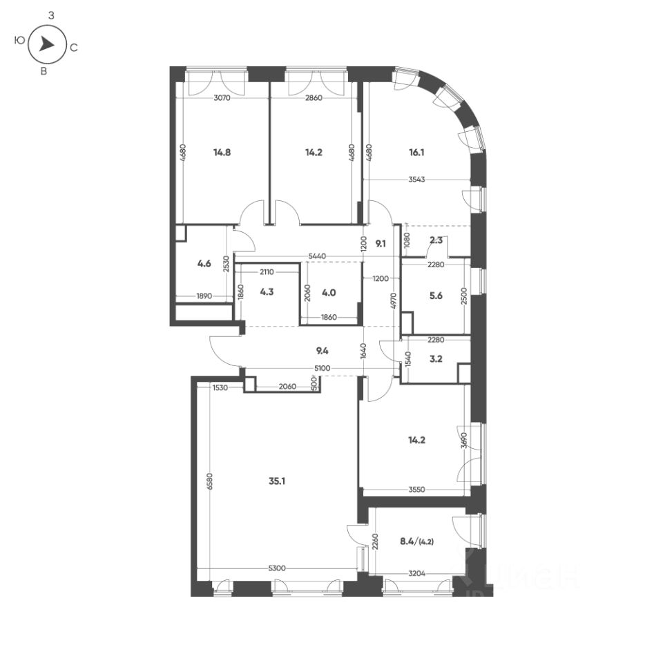Общая площадь квартиры — 141.1 кв. м, этаж 12 из 16.