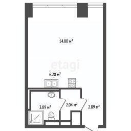 Планировка не угловая, рациональная, с четким зонированием: изолированная жилая комната 15 кв. м и кухня 6.4 кв. м.