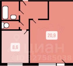 Просторная комната 21 м² и полноценная кухня 8,6 м² позволяют удобно организовать пространство.