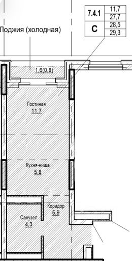Комфортная спальная зона - 11.7 кв.м., функциональная кухня-ниша - 5.8 кв.м., совмещенный санузел, коридор 4.3 кв.м. и лоджия 2.1 кв.м. Эргономичная планировка и отсутствие ремонта помогут реализовать любой дизайнерский проект и сделать пространство максимально авторским.