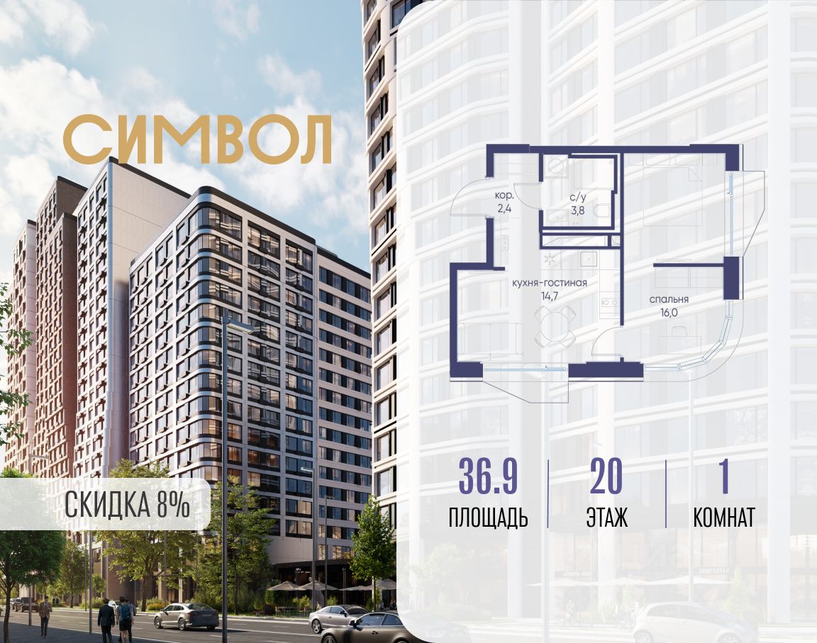 Скидка до 8% действует до 31.03.2026 г. при 100% оплате и не субсидированной ипотеке. Продается 1-комнатная квартира от застройщика: общая площадь 36.90 м², жилая 14.10 м², кухня 15.60 м², 20-й этаж, жилой квартал "Гордость", корпус 40 (секция 1). Срок сдачи: 2 квартал 2029 года. Позвоните сейчас и забронируйте квартиру! Квартал бизнес-класса СИМВОЛ - это городское пространство нового поколения в историческом районе Лефортово, на границе ЦАО, в 2 км от Садового кольца. Бионическая архитектура СИМВОЛА превратила Лефортово в суперсовременное и модное пространство. Из окон, с балконов и террас просторных квартир СИМВОЛА открываются отличные виды на город и новый парк "Зеленая река", "протекающий" через все кварталы комплекса на 2 км. В квартале уже есть все, что нужно для комфортной жизни: кафе и рестораны, супермаркеты и магазины, медицинские и физкультурно-оздоровительные центры, салоны красоты и барбершопы, аптеки и оптики, химчистки, пункты доставки и другие сервисы - всего более 90 действующих объектов внутриквартальной инфраструктуры. Для юных жителей СИМВОЛА открыты детский сад и инженерный лицей при МГТУ им. Баумана. Особенности квартала: • Свой парк "Зеленая Река" - 10 га зелени и развлечений на любой вкус! • Уникальная для Москвы архитектура - Проект создан архитектурной мастерской ATRIUM по дизайн-коду британских бюро LDA Design и UHA London. • Богатая инфраструктура с детскими садами и лицеем им. Баумана, кафе и ресторанами, супермаркетами и аптеками, зоной для фитнеса, бассейном и мед. центром. • Квартиры с панорамными окнами, террасами, ванными с окнами и каминами редких форматов. • Закрытые безопасные зелёные дворы-парки без машин!