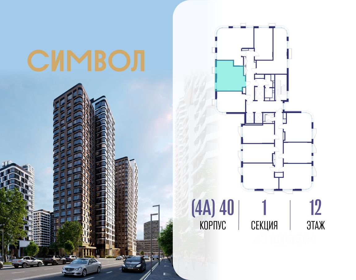 Продается 1-комнатная квартира от застройщика: общая площадь 36.90 м², жилая 12.70 м², кухня 20.10 м², 12-й этаж, жилой квартал "Гордость", корпус 40 (секция 1). Срок сдачи: 2 квартал 2029 года.