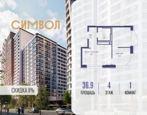 Продается 1-комнатная квартира от застройщика: общая площадь 36.90 м², жилая 16.00 м², кухня 14.70 м², 4-й этаж, жилой квартал "Гордость", корпус 40 (секция 1). Срок сдачи: 2 квартал 2029 года.