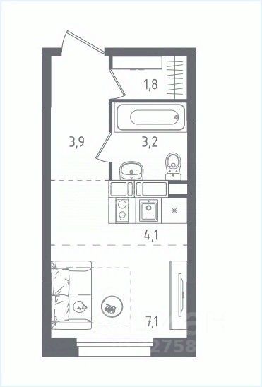 Арт. 132500165 Продается Студия через дорогу ЖК "Ольховый Квартал" Студия расположена на 4 этаже . Дом сдан!!! Уютная светлая квартира с отличным видом из окна. Комната 7.1 м2, кухня -ниша 4.1 м2 , прихожая 3.9 м2, санузел совмещенный 3.2 м2 .