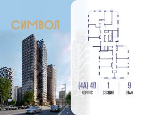 Продается квартира-студия от застройщика: общая площадь 28.00 м², жилая 16.60 м², кухня 5.00 м², 9-й этаж, жилой квартал "Гордость", корпус 40 (секция 1). Срок сдачи: 2 квартал 2029 года.