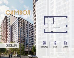 Продается квартира-студия от застройщика: общая площадь 28.00 м², жилая 16.60 м², кухня 5.00 м², 12-й этаж, жилой квартал "Гордость", корпус 40 (секция 1). Срок сдачи: 2 квартал 2029 года.
