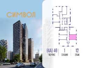 Продается квартира-студия от застройщика: общая площадь 28.00 м², жилая 15.60 м², кухня 5.00 м², 12-й этаж, жилой квартал "Гордость", корпус 40 (секция 1). Срок сдачи: 2 квартал 2029 года.