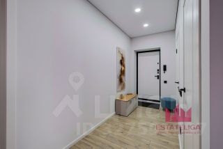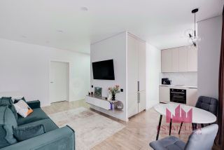 Квартира полностью отремонтирована в современном минималистичном стиле с очень тёплой атмосферой.