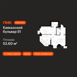 Продаётся 2-комн. квартира площадью 53,6 кв.м на 3 этаже 23 этажного дома (Корпус 3.2, Секция 2) проекта ПИК Кавказский бульвар 51. Светлый просторный подъезд на уровне земли, функциональная планировка, большие окна, c отделкой.