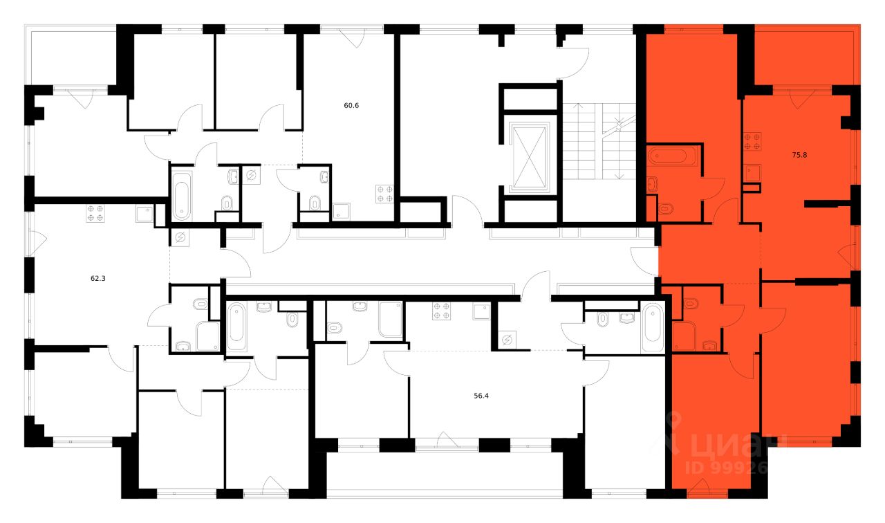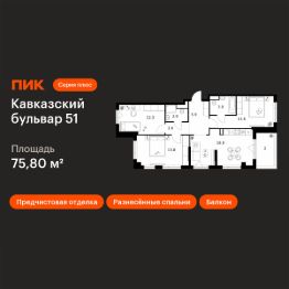 Продаётся 3-комн. квартира площадью 75,8 кв.м на 7 этаже 7 этажного дома (Корпус 3.7, Секция 4) проекта ПИК Кавказский бульвар 51. Светлый просторный подъезд на уровне земли, функциональная планировка, большие окна, предчистовая отделка.