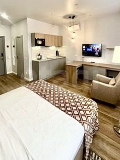 Эта студия — готовый бизнес, выгодный актив, можете получать прибыль с краткосрочной и долгосрочной аренды, все уже организовано и выстроено под это.