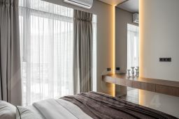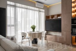 Дизайн проект выполнен в стиле минимализм с использованием современных материалов. Вся мебель и техника входит в стоимость объекта недвижимости - холодильник, стиральная машина, сушильная машина, посудомоечная машина, духовой шкаф, микроволновая печь, варочная поверхность, канальный кондиционер. Окна квартиры во двор. В ваннах установлен теплый пол.