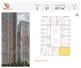 Продается двухкомнатная квартира в ЖК "Проспект 39" по адресу Москва, ЮВАО, Рязанский проспект, вл. 39, к. 1. Общая площадь квартиры - 67,70 кв.м., этаж 27. Стоимость квартиры - 27 321 537 р. Продаётся без отделки.
