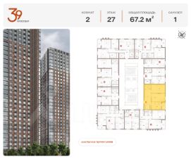 Продается двухкомнатная квартира в ЖК "Проспект 39" по адресу Москва, ЮВАО, Рязанский проспект, вл. 39, к. 1. Общая площадь квартиры - 67,20 кв.м., этаж 31. Стоимость квартиры - 28 239 125 р. Продаётся без отделки.