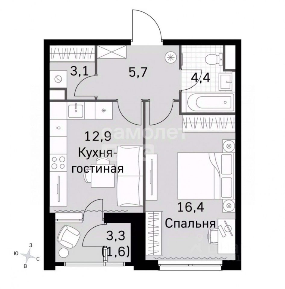 16,4 м²