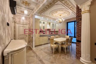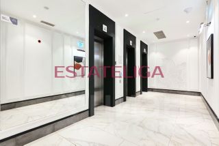 Скрытая кухня оборудована всей необходимой встроенной бытовой техникой: холодильник, духовой шкаф, варочная панель, вытяжка и посудомоечная машина. Механизмы серво-драйв.Вся мебель на кнопках нажатия. В санузле установлена стиральная машина и система протечки с FW.