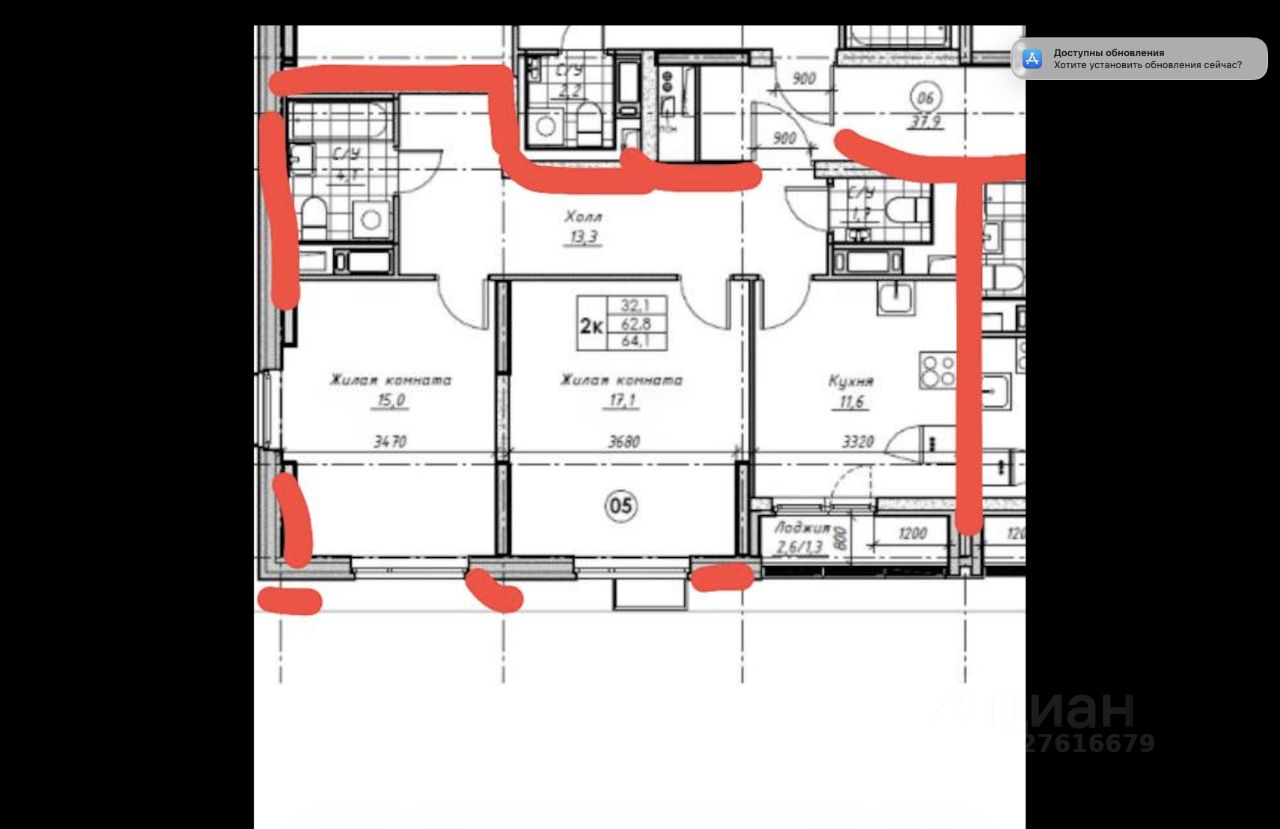 64,1 м²