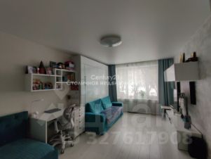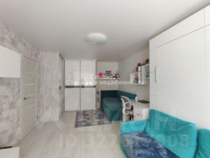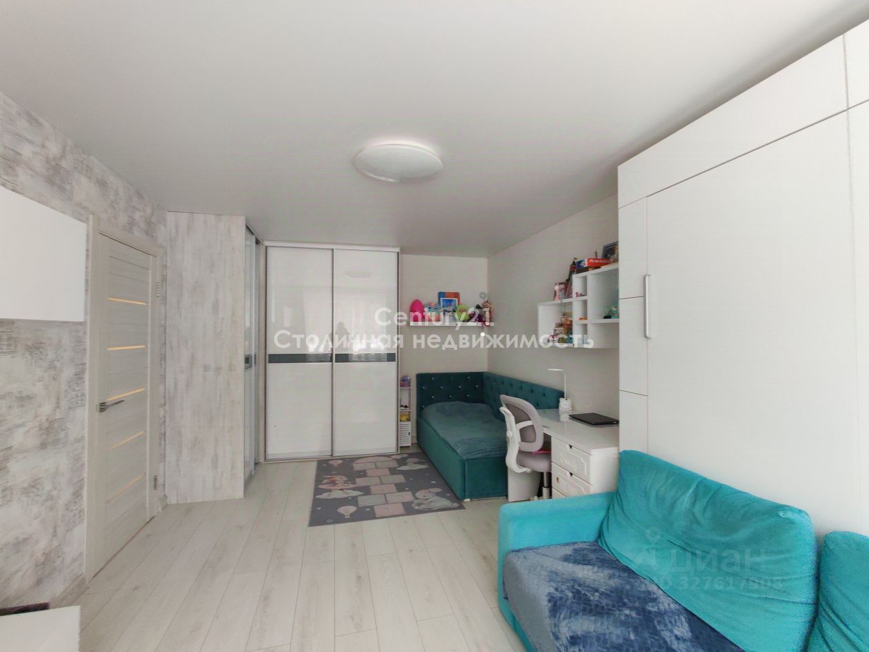 Грамотное зонирование пространства позволяет разместить дополнительное спальное место (качественная односпальная кровать), рабочую зону (письменный стол с полками) и встроенные шкафы для хранения вещей. Мебель остается новому владельцу.
