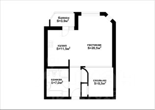Просторная комната 20,5 м² место для воплощения любых дизайнерских идей.