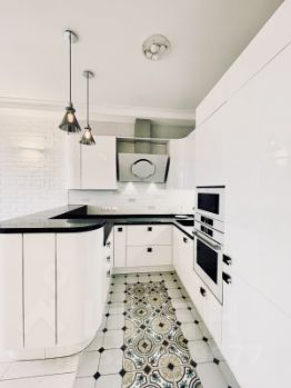 Просторная кухня площадью 25.3 кв. м станет любимым местом для семейных обедов и встреч с друзьями, установлен дорогой кухонный гарнитур, вся техника Bosh.
