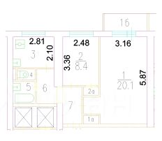 Продается 2-комнатная квартира. Общая площадь ЕГРН - 44,7 кв.м., комнаты изолированные 20,1-8,4 кв.м., кухня - 5,9 кв.м., застекленный балкон.