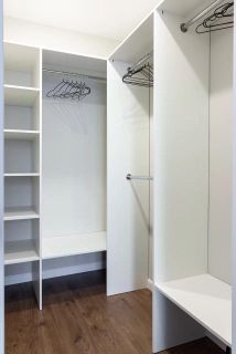 - Отдельная гардеробная, оборудована полками, позволяет с удобством разместить крупногабаритные вещи
