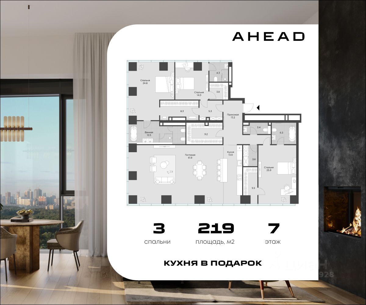 Успейте приобрести по выгодным условиям! Ahead это эксклюзивный проект в центре столицы, включающий всего 77 резиденций, что гарантирует приватность и комфорт для жильцов. Комплекс отличается авторской архитектурой от бюро "Цимайло Ляшенко и Партнёры", а из окон открываются панорамные виды на Парк Победы, Воробьёвы горы и Москва-Сити. Внутреннее пространство оформлено с особым вниманием к деталям: лобби создано студией UNK Interiors, а двор благоустроен в японском стиле с 58-метровым водопадом высотой 4,5 м и сосной "ниваки". Все резиденции предлагаются с отделкой White Box. При покупке ряда апартаментов владелец получает в качестве бонуса готовый дизайн-проект с рабочей документацией от известной студии дизайна BALCON, что в разы ускорит и упростит процесс превращения "белого листа" в продуманное и комфортное пространство для жизни. Для удобства жильцов на седьмом этаже расположен клубный этаж Sky Lobby, включающий Sky Social Club с панорамной террасой, фитнес-зону Air Fitness с кардиозоной и залом для йоги и пилатеса, а также коворкинг-трансформер с отдельной переговорной. В комплексе предусмотрен современный подземный паркинг с биометрическим контролем доступа, распознаванием госномеров и возможностью установки зарядок для электрокаров. На всей территории действует Wi-Fi. Расположение комплекса обеспечивает отличную транспортную доступность: до Москва-Сити и Киевского вокзала можно добраться за 10 минут на автомобиле, до инновационного центра Сколково — за 15 минут. Комплекс оснащён современными технологиями и системами безопасности, включая биометрический доступ по Face ID, умную систему управления домом, приточно-вытяжную вентиляцию, центральное кондиционирование и круглосуточный мониторинг. AHEAD — это пространство для комфортной жизни в сердце Москвы, где каждая деталь создана для благополучия жильцов.