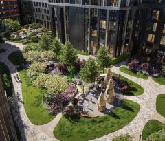 Концепция благоустройства территории мультиквартала предусматривает большое количество вечнозеленых растений, что создает ощущение максимальной близости к природе. Жителей квартала ждут места для отдыха, игр, занятий спортом и прогулок с домашними питомцами. В приватном дворе с собственным садом предусмотрена зеленая комьюнити-гостиная для дружеского отдыха и общения, одна из стен которой подходит для кинопроекций, а также зеленый рабочий кабинет в саду (бизнес-гардена), оборудованный wi-fi станцией и usb-разъёмами для зарядки устройств. Маленьких жителей ждут авторские игровые площадки для разных возрастных групп (от 0 до 12 лет).