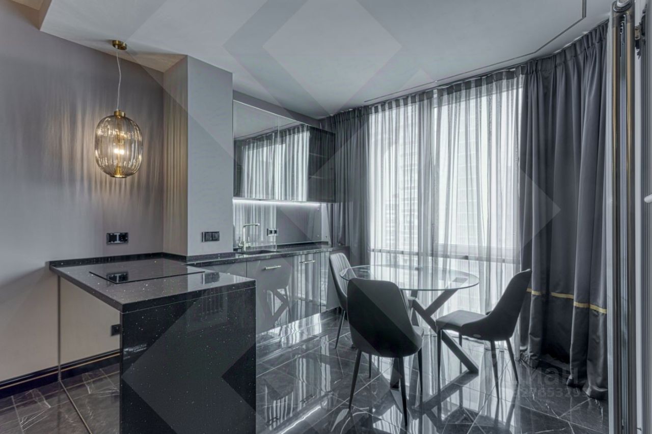 ЖК бизнес класса "Мосфильмовский" В продажу предлагается стильная евро 2х комнатная квартира премиум класса. Выполнен дорогостоящий, качественный ремонт по индивидуальному дизайн проекту. По планировке: просторная кухня-гостиная со всей бытовой техникой премиальной линейки, лоджия объединена в общее пространство с панорамным окном в пол, спальня с вместительным шкафом, оборудованный санузел с душевой кабиной, прихожая. Вся мебель дизайнерская изготовлена под заказ, система кондиционирования, видеодомофон.