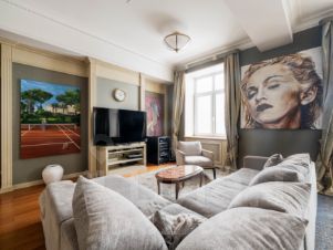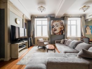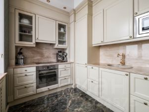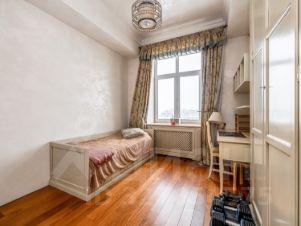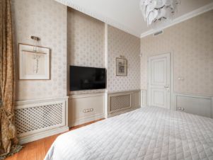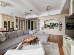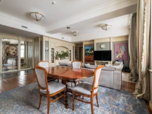 В квартире выполнен дизайнерский ремонт, состояние — отличное. Мебель от брендов Dantone home и BoConcept. Телевизор в гостиной 170см SONY и в спальне 125см Samsung. Вместительный винный шкаф La Sommeliere и встроенные микроволновая печь и духовка BOSCH.