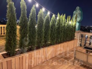 Просторная терраса полностью обустроена: зона отдыха с диванами, 3 разетки, газовый гриль Bork, зона барбекю, стильное деревянное покрытие лиственницей и подсветка — идеальное пространство для встреч с друзьями или семейных вечеров.