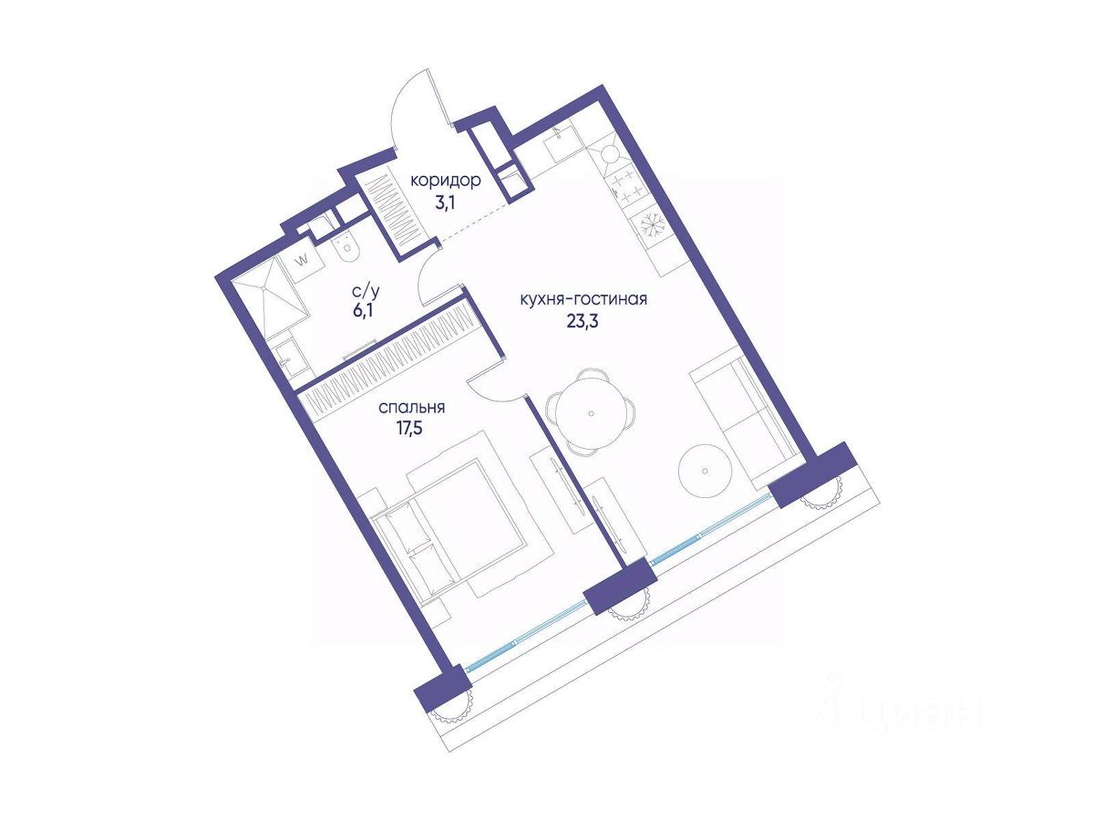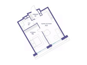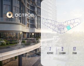Продаётся однокомнатная квартира от застройщика: общая площадь 50.00 м², жилая 17.50 м², кухня 23.30 м², 17, жилой квартал "Остров 7", корпус 7 (7 квартал) (секция 2). срок сдачи: 4-кв. 2025.