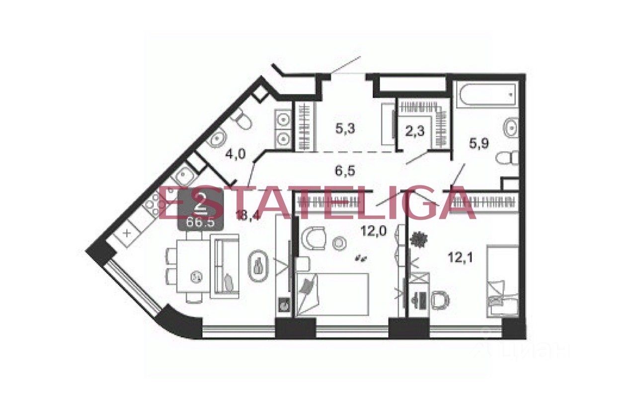 Id 61485. "Предлагается к продаже 2 комнатная квартира в современном жилом комплексе бизнес-класса "Shagal".