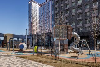- Уникальный ландшафтный двор-парк, где каждый найдет место для отдыха и развлечений: прогулочные аллеи, окруженные зелеными насаждениями, фонтан, спортивные и детские площадки, зарядные станции для гаджетов и Wi-Fi.