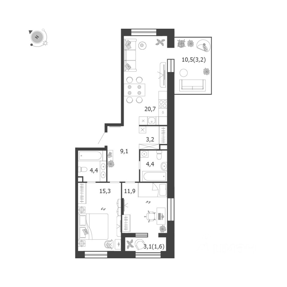 Продаётся 2-комнатная квартира в строящемся доме (Корпус 9 (3 очередь)), срок сдачи: IV-кв. 2026, общей площадью 73.8 кв.м., на 2 этаже. Это город в городе, который не подстраивается под старые рамки, а задает новую планку и стандарт жилого района в России.