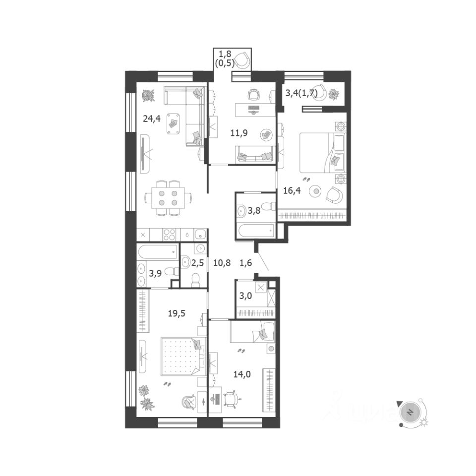 Продаётся 4-комнатная квартира в строящемся доме (Корпус 8 (3 очередь)), срок сдачи: IV-кв. 2026, общей площадью 114 кв.м., на 19 этаже. Это город в городе, который не подстраивается под старые рамки, а задает новую планку и стандарт жилого района в России.