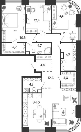 Продаётся 3-комнатная квартира в строящемся доме (Корпус 6.1 (2 очередь 1 этап)), срок сдачи: I-кв. 2026, общей площадью 119.8 кв.м., на 15 этаже. Это город в городе, который не подстраивается под старые рамки, а задает новую планку и стандарт жилого района в России.