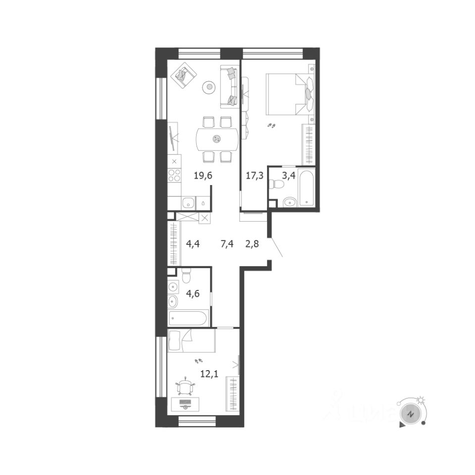 Продаётся 2-комнатная квартира в строящемся доме (Корпус 5 (3 очередь)), срок сдачи: IV-кв. 2026, общей площадью 71.6 кв.м., на 19 этаже. Это город в городе, который не подстраивается под старые рамки, а задает новую планку и стандарт жилого района в России.