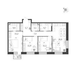 Продаётся 3-комнатная квартира в строящемся доме (Корпус 5 (3 очередь)), срок сдачи: IV-кв. 2026, общей площадью 84.8 кв.м., на 6 этаже. Это город в городе, который не подстраивается под старые рамки, а задает новую планку и стандарт жилого района в России.
