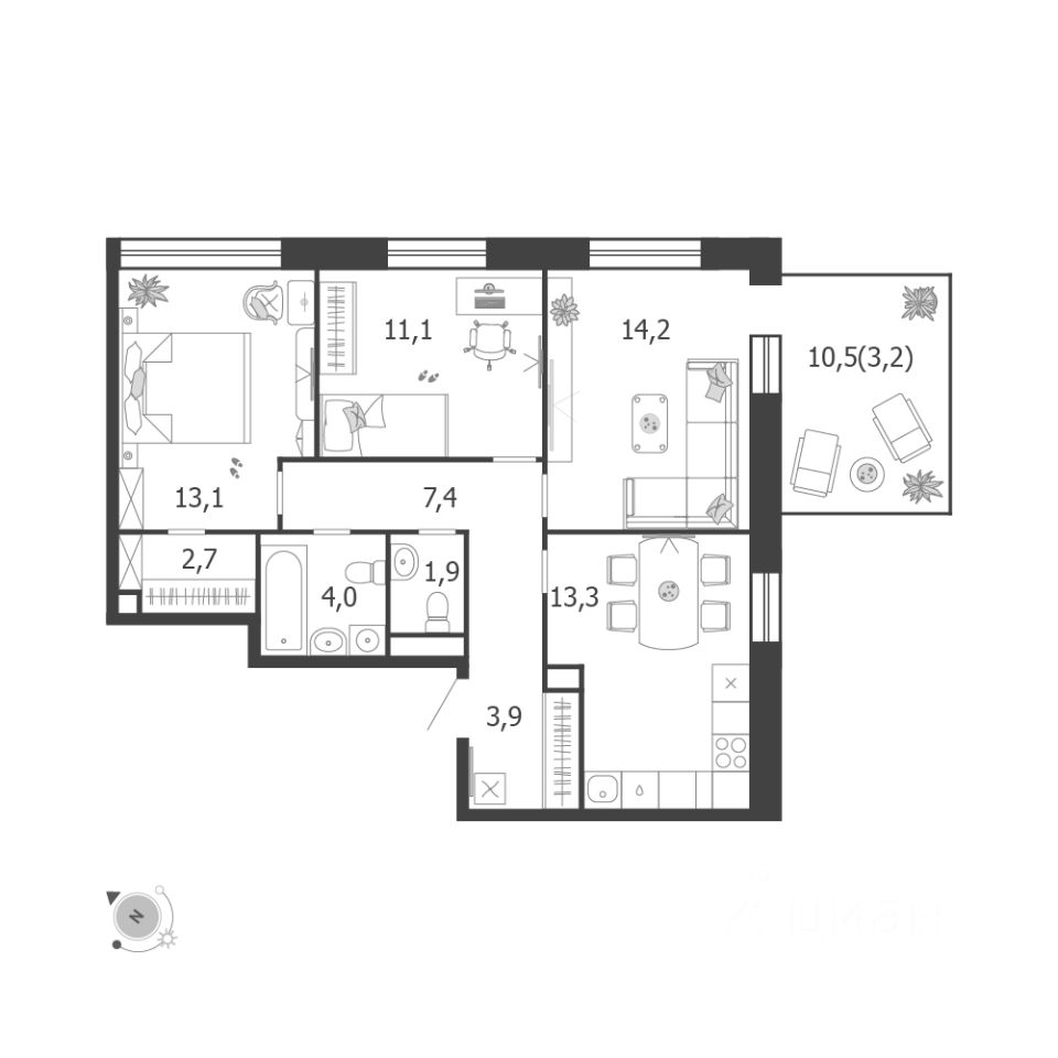 Продаётся 3-комнатная квартира в строящемся доме (Корпус 5 (3 очередь)), срок сдачи: IV-кв. 2026, общей площадью 74.8 кв.м., на 11 этаже. Это город в городе, который не подстраивается под старые рамки, а задает новую планку и стандарт жилого района в России.