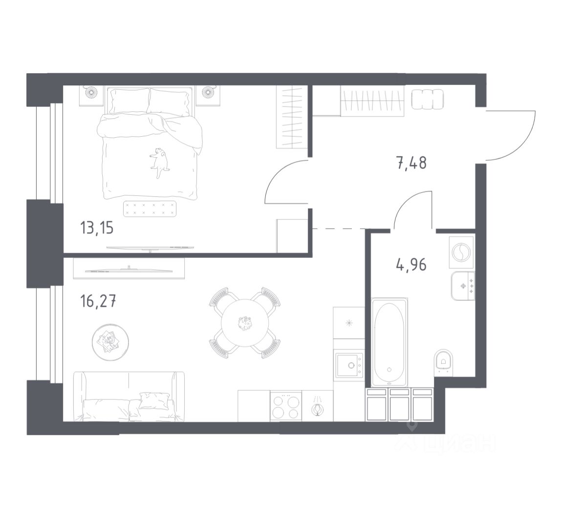 Строим кварталы для жизни с заботой о будущем. Предлагаются 1-комнатные апартаменты бизнес-класса площадью 41,87 кв.м в корпусе 2.3 на 23-м этаже, в жилом комплексе "Тропарево Парк".