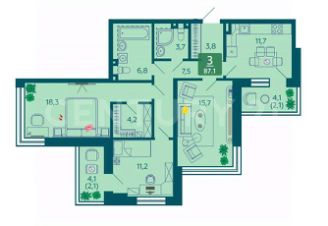 Шикарная 3 комнатная квартира , с большой кухней - гостинной !